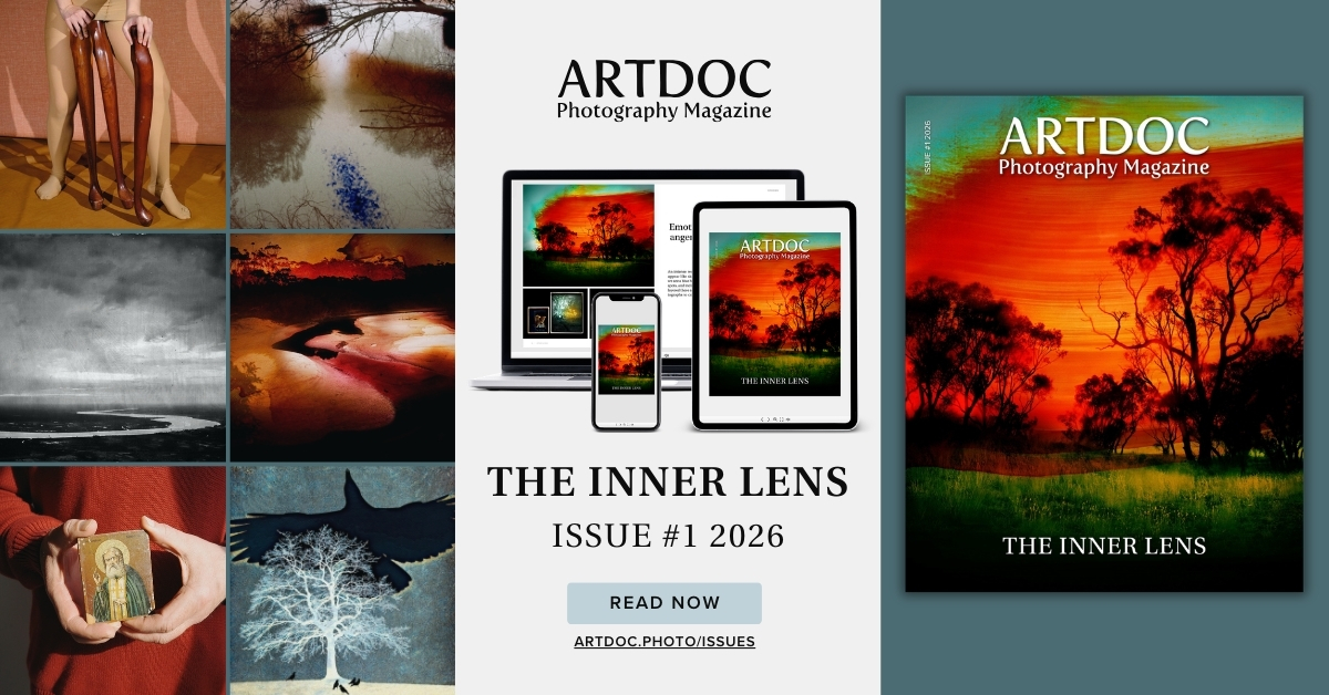 Photographers now use the inner lens rather than a mechanical one. This personal eye not only perceives reality but also merges it with psychological awareness. Olga Shatokha investigates the stories passed down from Ukraine, blending family history with landscapes. Yi Hsuan Lai examines the body as a canvas for psychological expression, exploring femininity shaped by her personal journey. Susana Espana explores the inner landscape of memory by creating layered images inspired by her experiences. Aletheia Casey merges aesthetic features with documentary photography to convey an emotional message about the wildfires and Australia’s difficult history. This Artdoc issue also features emerging talents: VJ Martin, Lawrence Manning, and Virginia McGee Richards. The Inner Lens exhibition fosters a conversation between inner experiences and the external environment. The essay, Rethinking Iconography in Contemporary Photography, examines the role of symbols in today's photography.